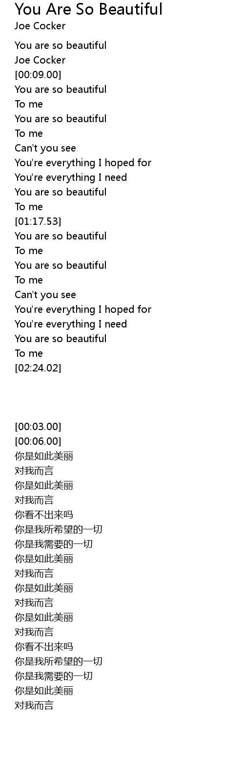| [00:18.00] | You are so beautiful |