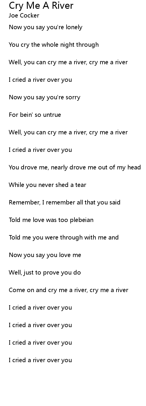 Come on and cry me a river, cry me a river |
