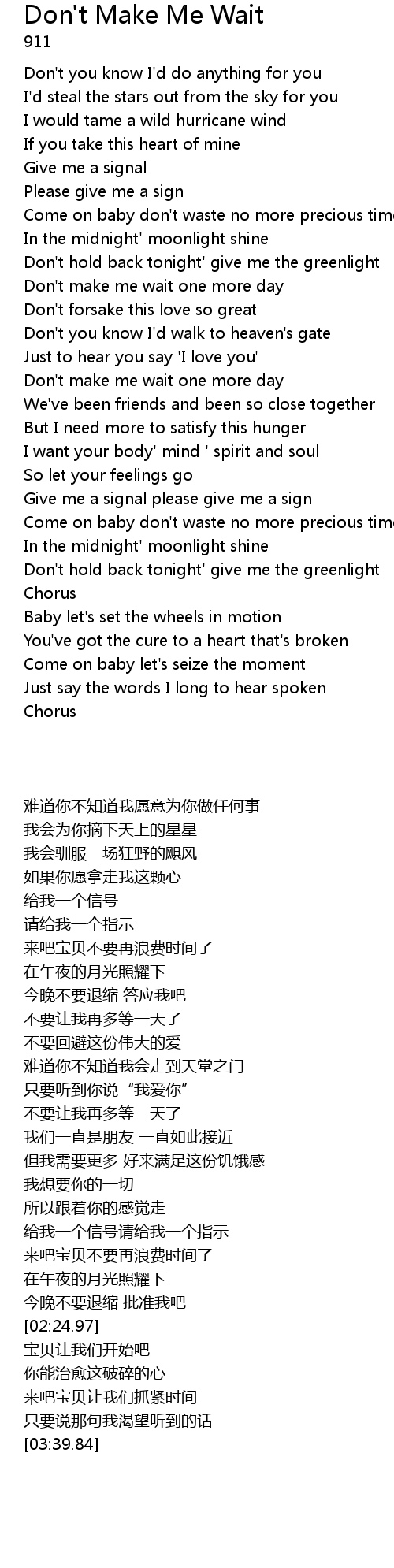 Don't make me wait one more day |