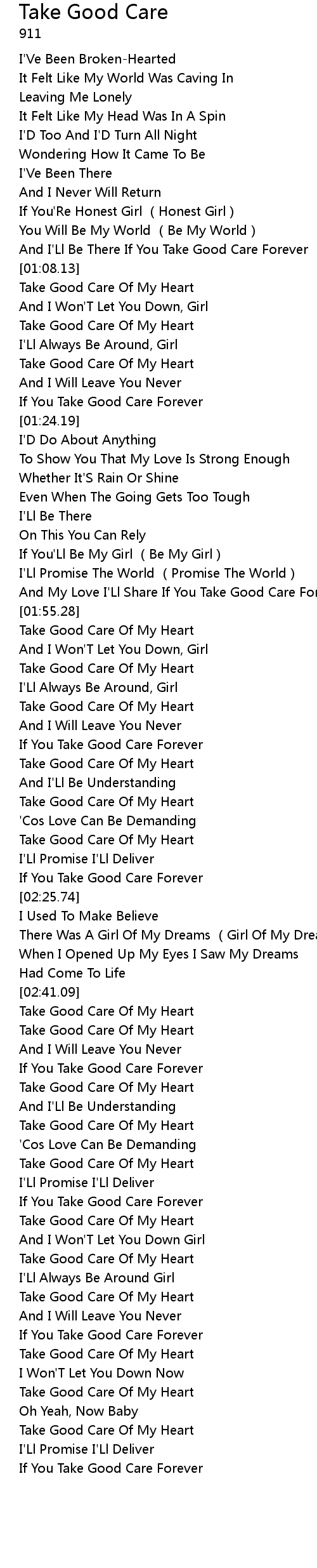 | [02:55.28] | Take Good Care Of My Heart |