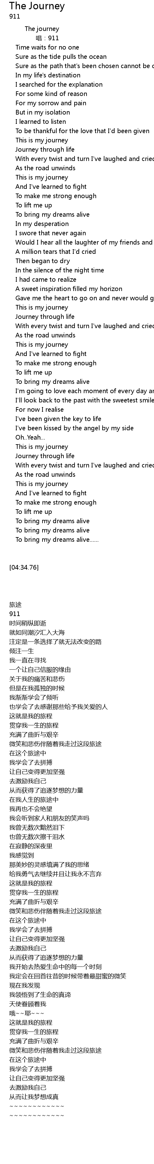 | [03:33.66] | With every twist and turn I've laughed and cried |