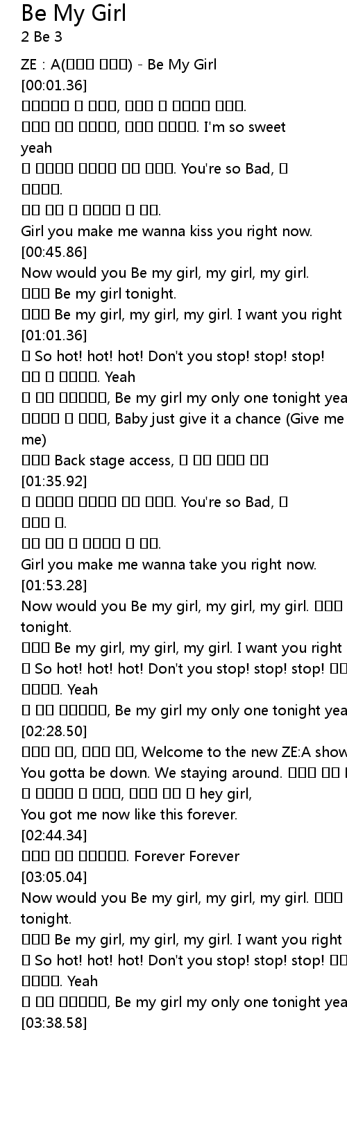 | [01:58.03] | Now would you Be my girl, my girl, my girl. 이제는 Be my girl tonight. |