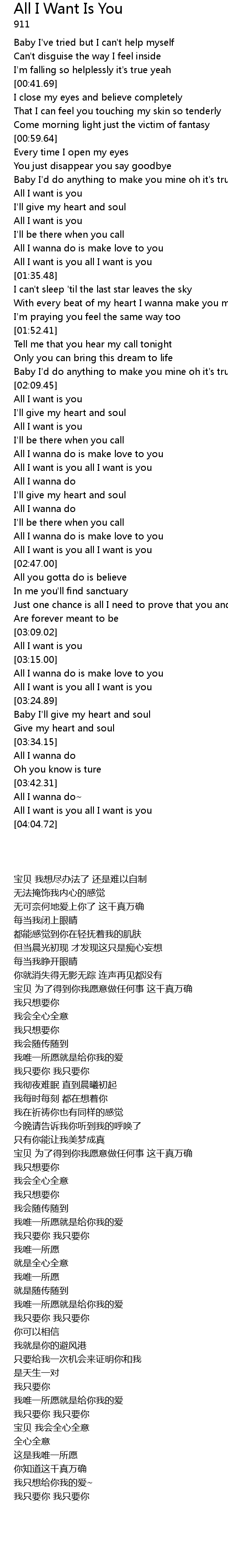 | [04:00.02] | All I want is you all I want is you |