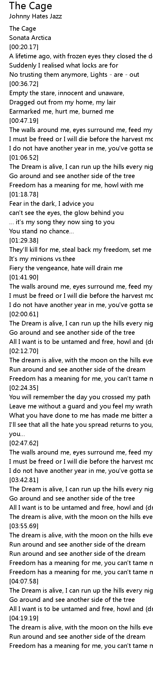 | [04:15.00] | All I want is to be untamed and free, howl and dream |