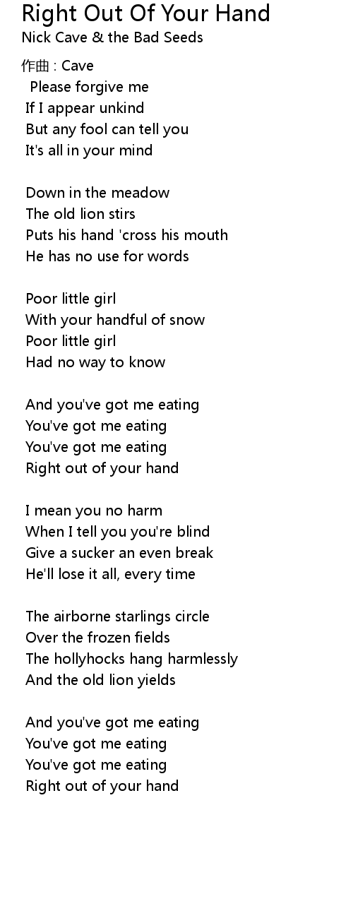 | Right out of your hand |
