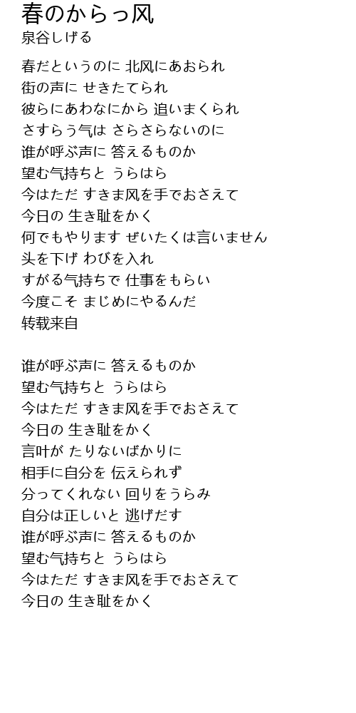 今はただ すきま风を手でおさえて |