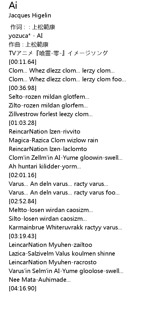 | [01:44.13] | Clom'in Zellm'in AI-Yume gloowin-swell... |