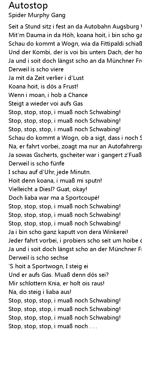 | Stop, stop, stop, i mua noch Schwabing! | |