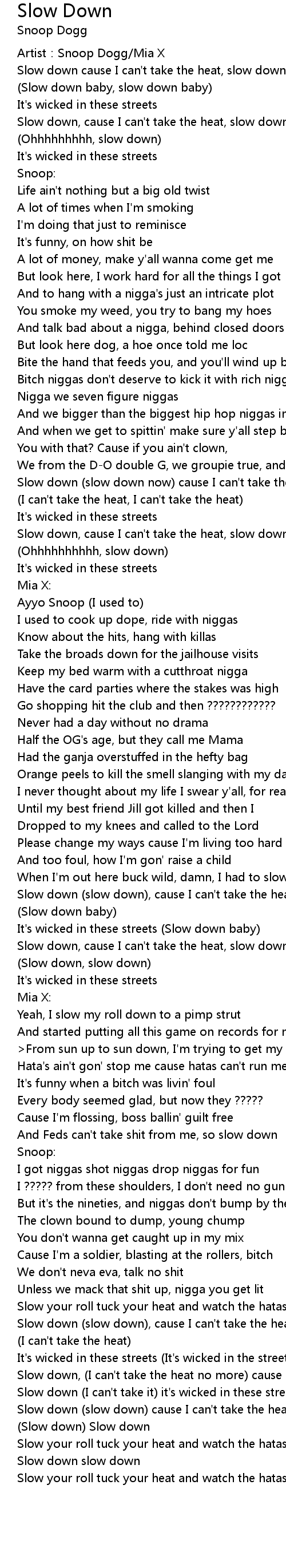 | Slow down I can' t take it it' s wicked in these streets | |