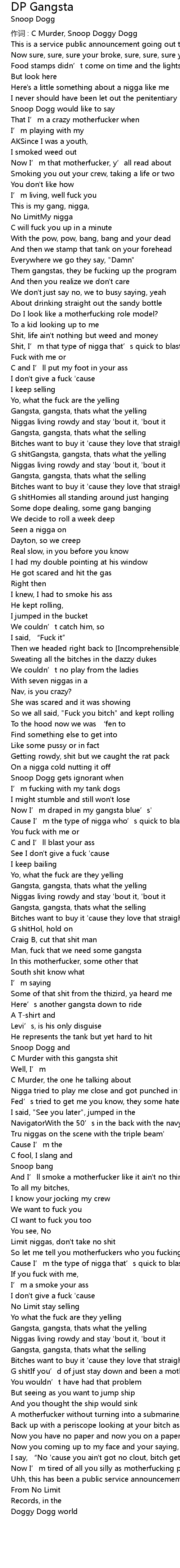 | 作词 : C Murder, Snoop Doggy Dogg | |