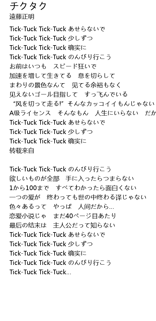 | Tick-Tuck Tick-Tuck あせらないで | |