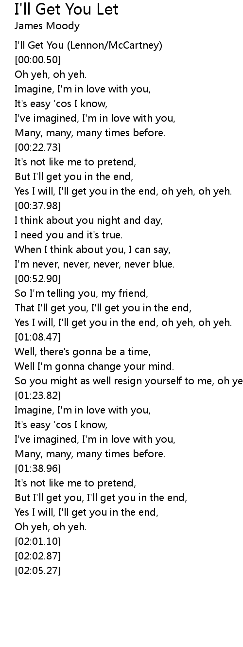 Yes I will, I'll get you in the end, oh yeh, oh yeh. |