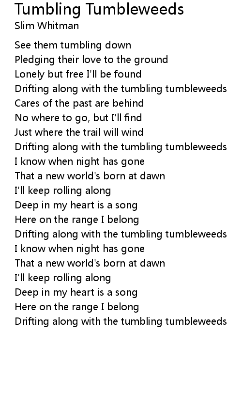 Drifting along with the tumbling tumbleweeds |