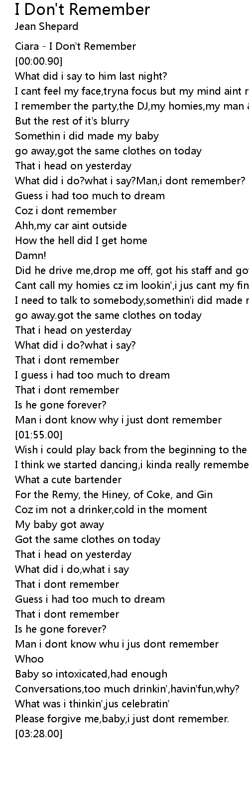 Ciara - I Don't Remember |
