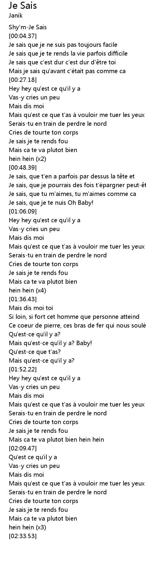 | [00:02.13] | Shy'm-Je Sais |