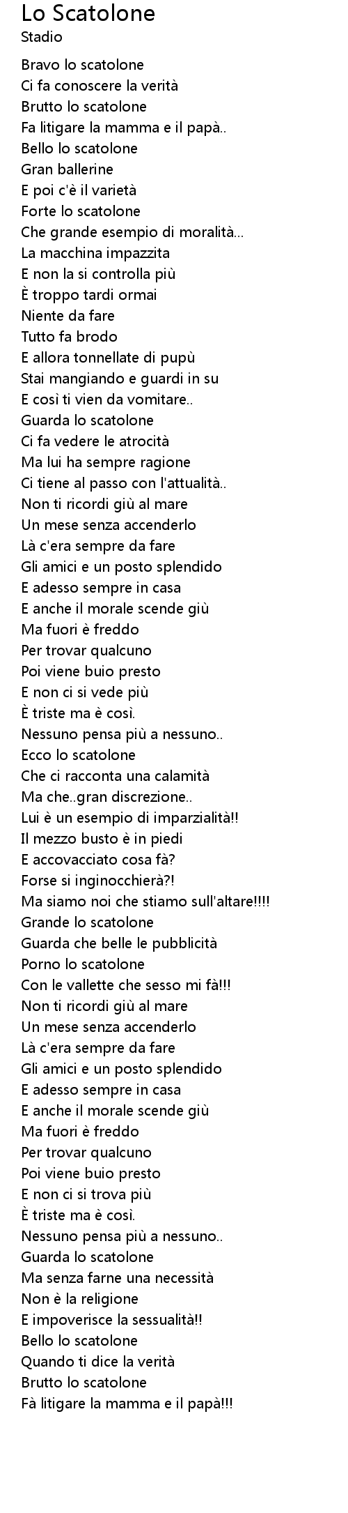 | Song | Lo Scatolone |