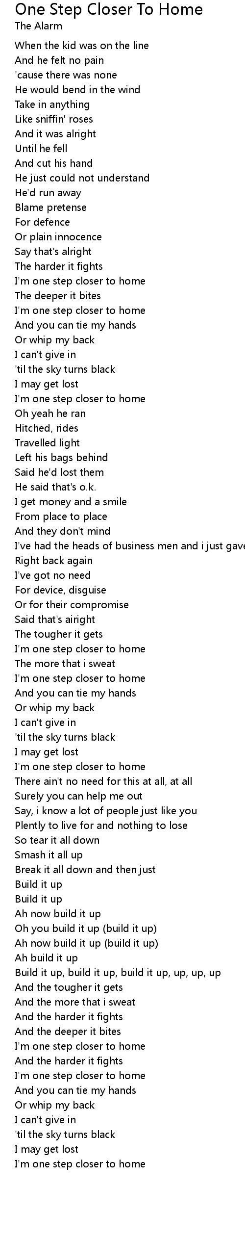 I'm one step closer to home |