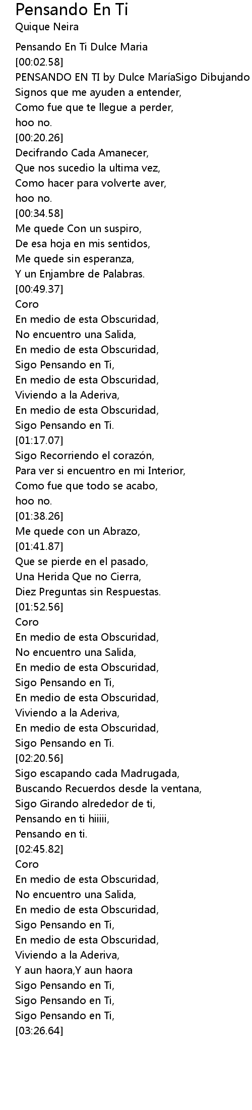 | [00:08.35] | PENSANDO EN TI by Dulce Mari aSigo Dibujando en la pared, |