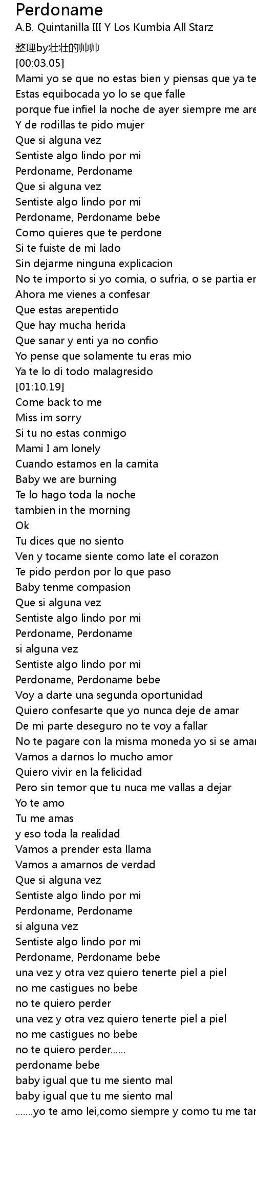 | [01:45.82] | Perdoname, Perdoname bebe |
