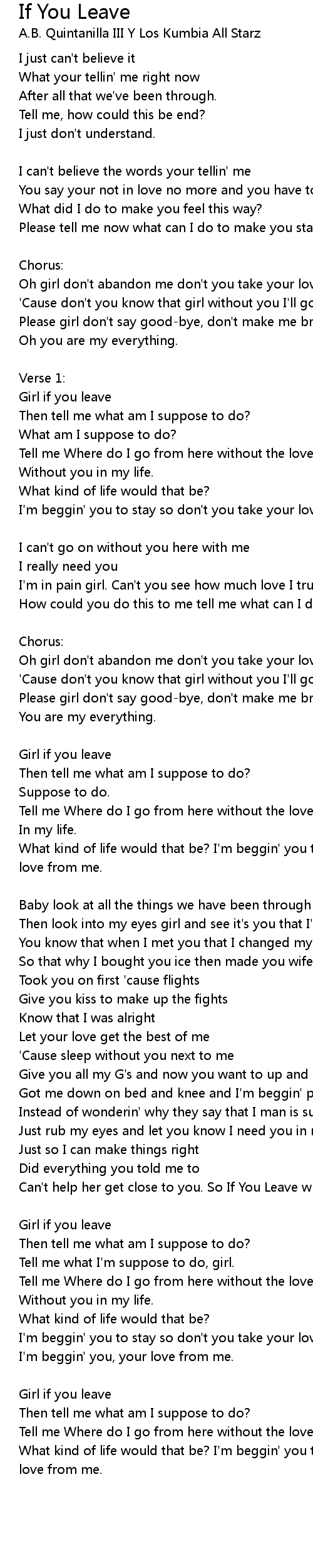 Oh girl don't abandon me don't you take your love from me. |
