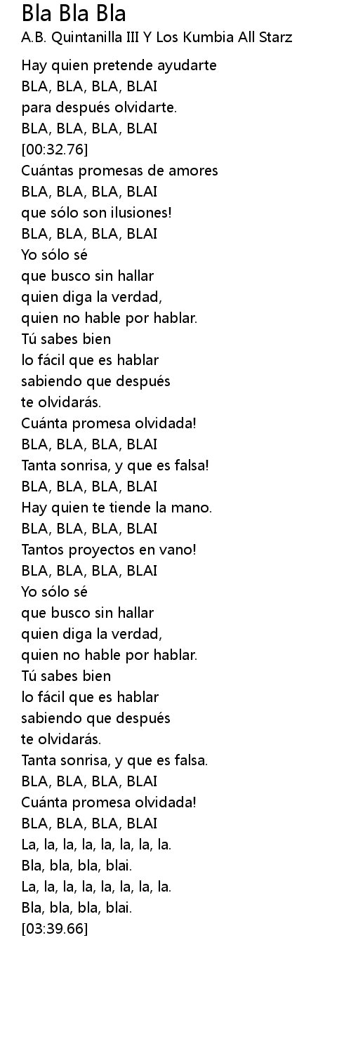 | [00:38.94] | BLA, BLA, BLA, BLAI |