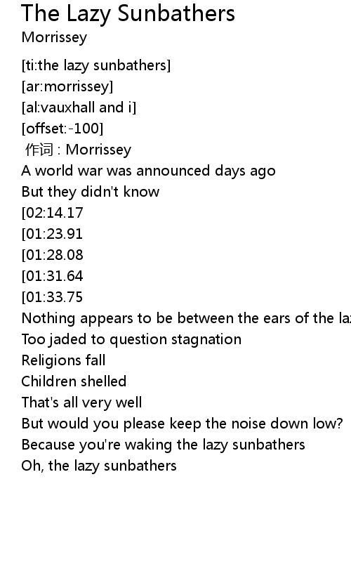 | [00:30.13][02:14.17] | The lazy sunbathers |