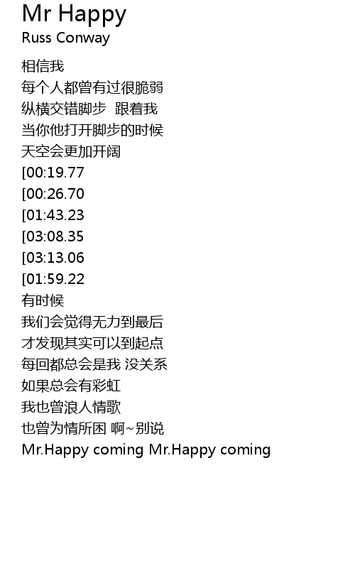 | [02:50.21] | Mr. Happy coming Mr. Happy coming |