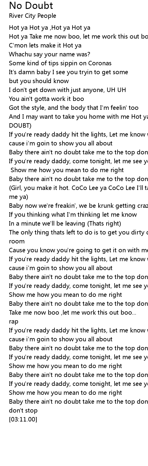 | [00:36.57]And I may want to take you home with me Hot ya (NO DOUBT] |