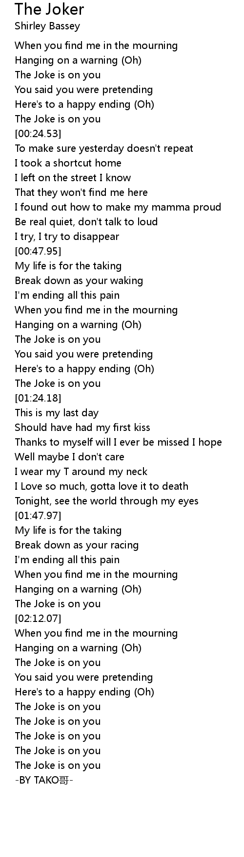 | [03:08.76] | The Joke is on you |