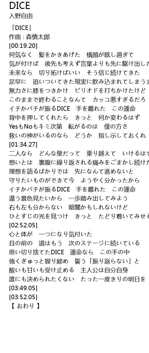| [00:01.20] | 「DICE」 |