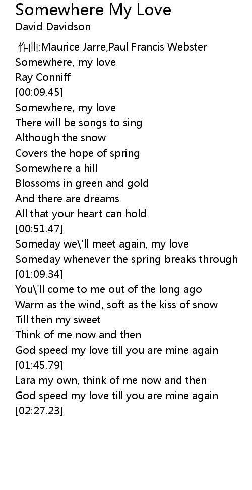 | [00:01.000] | zuò qǔ: Maurice Jarre, Paul Francis Webster |