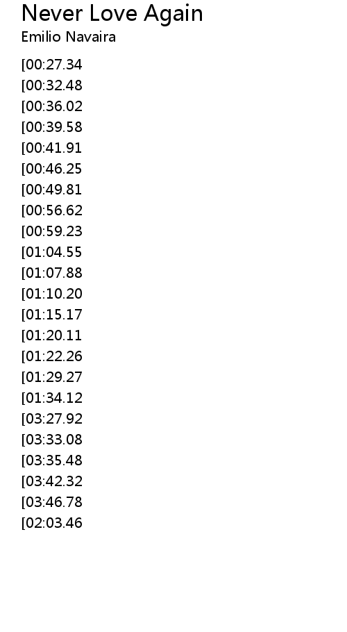 | [04:17.04][02:03.46] | Never love again |