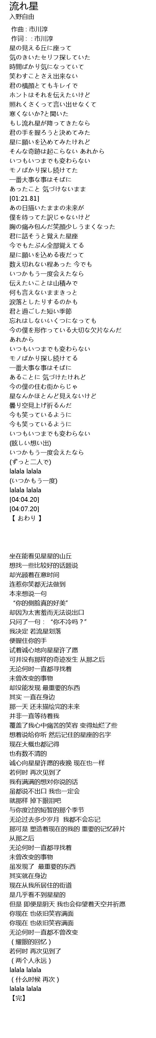 | [00:47.82] | もし流れ星が降ってきたなら |