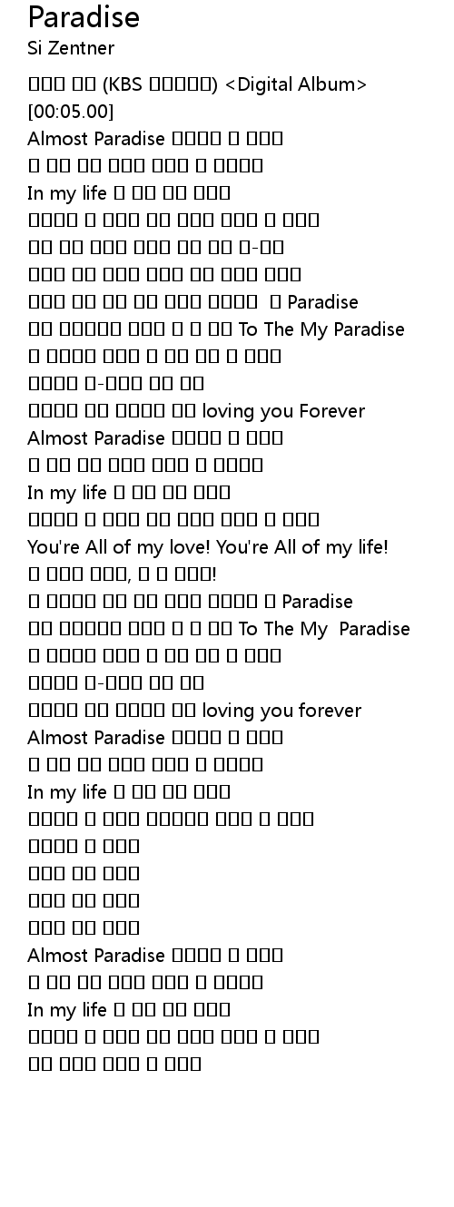 | [01:38.01] | Almost Paradise 태양보다 더 따스한 |