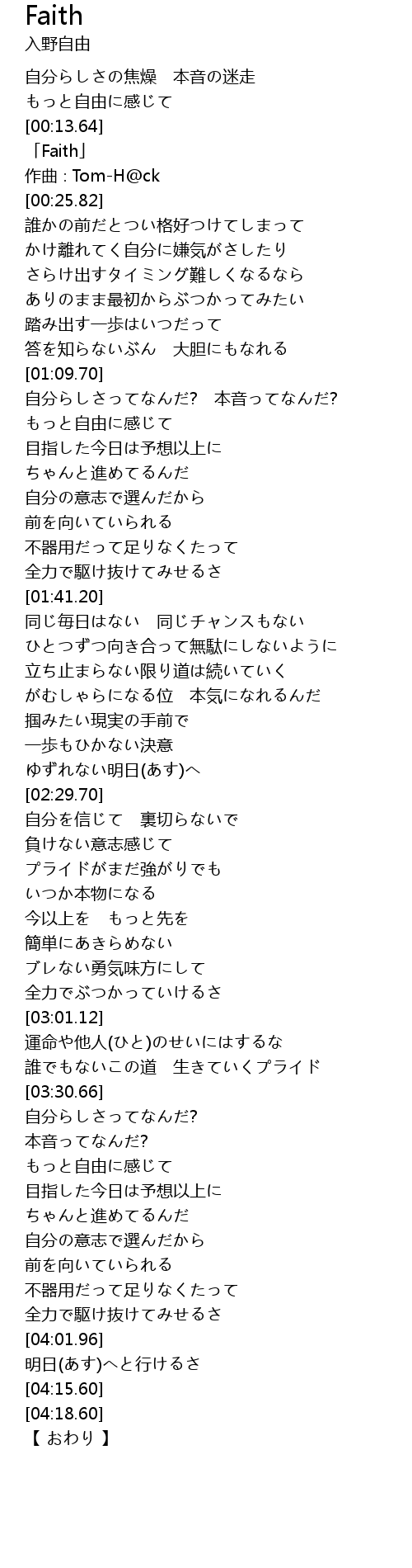 | [01:11.60] | 自分らしさってなんだ? 本音ってなんだ? |