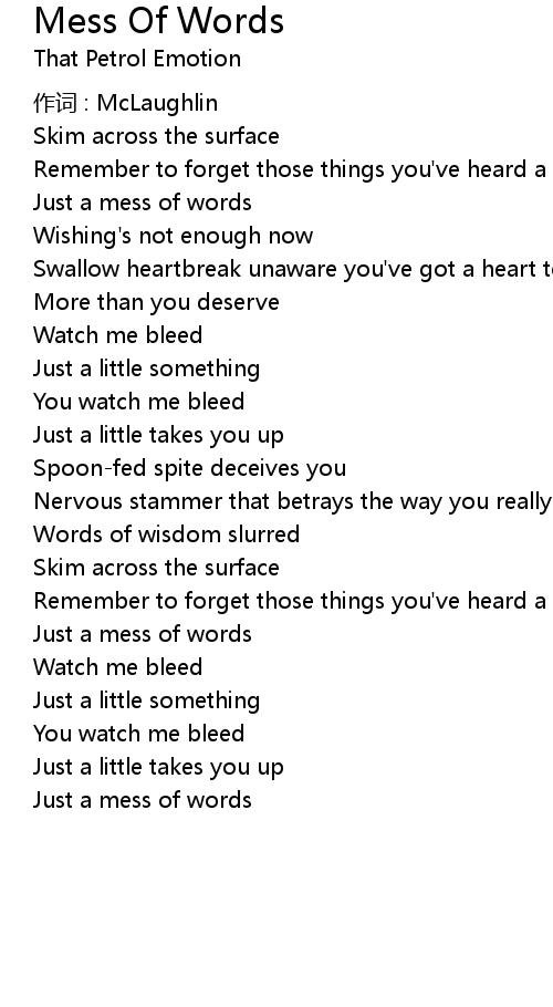 | Song | Mess Of Words |