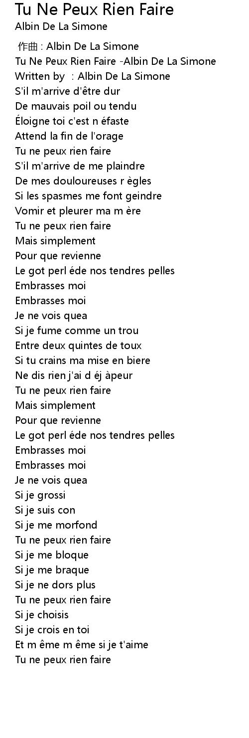 | [00:00.613] | Tu Ne Peux Rien Faire Albin De La Simone |