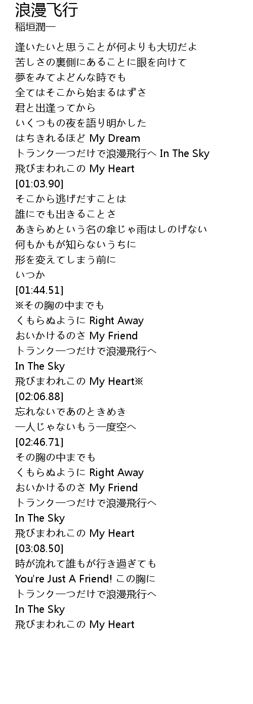 | [00:53.01] | トランク一つだけで浪漫飛行へ In The Sky |