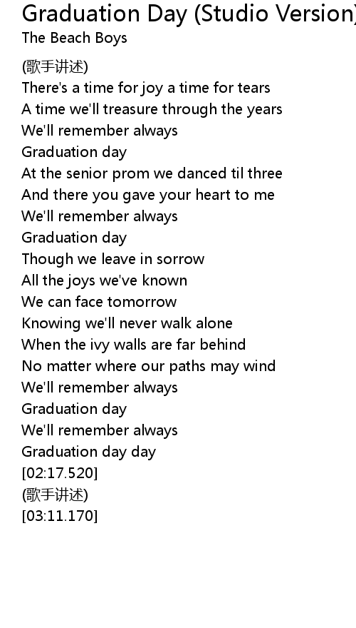 | [01:51.900] | Graduation day |