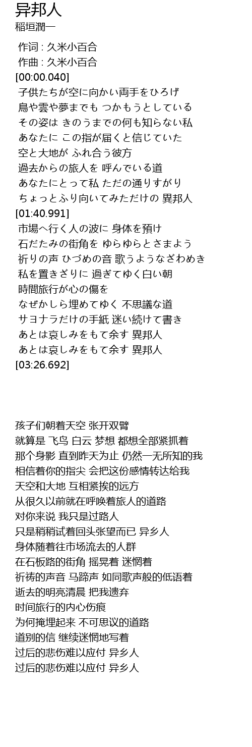 | [03:14.755] | あとは哀しみをもて余す 異邦人 |