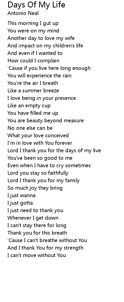 Lord I thank you for the days of my live |