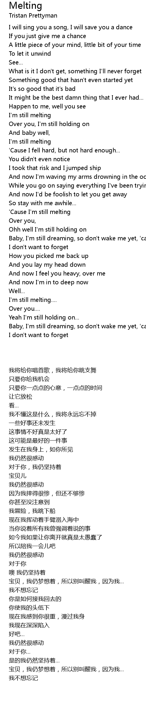 'Cause I'm still melting |