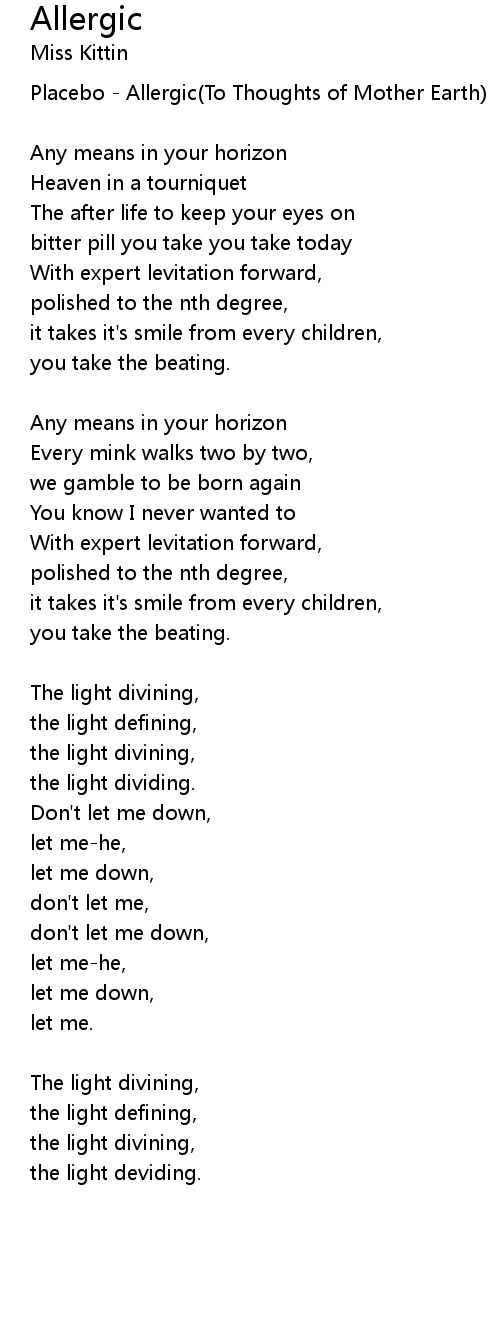 Placebo - Allergic(To Thoughts of Mother Earth) |