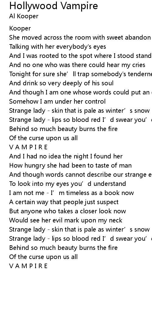 | Strange lady - lips so blood red I’d swear you’d know | |