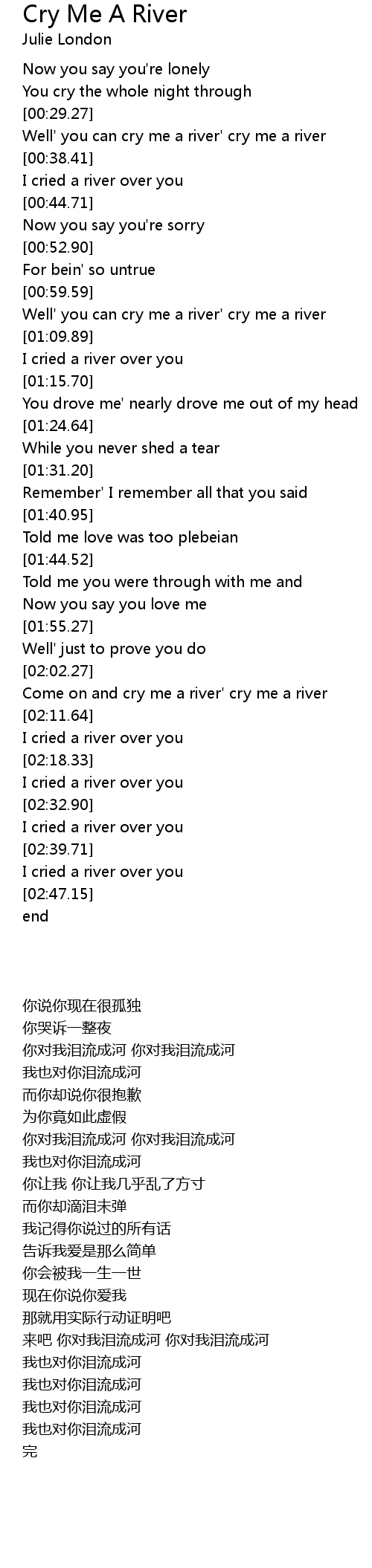 Well' you can cry me a river' cry me a river |