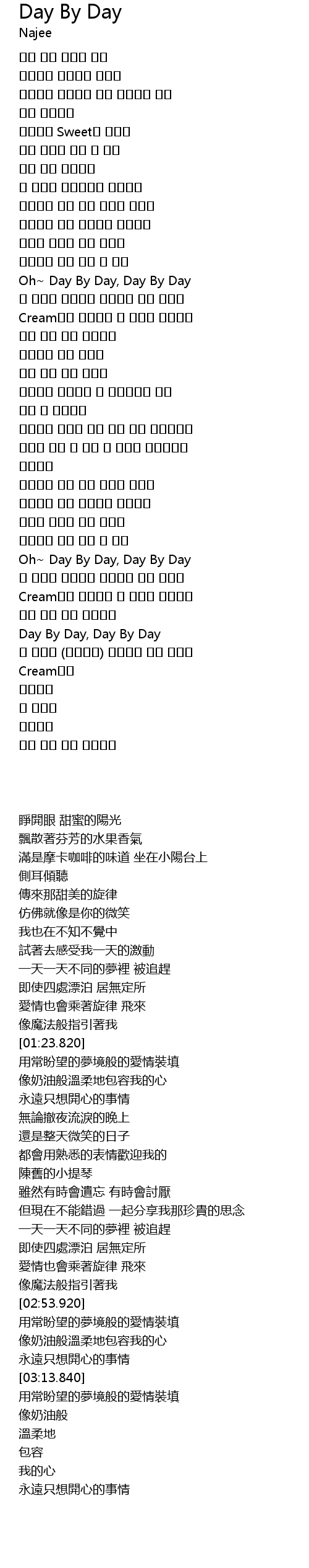 | [02:53.920] | Oh~ Day By Day, Day By Day |