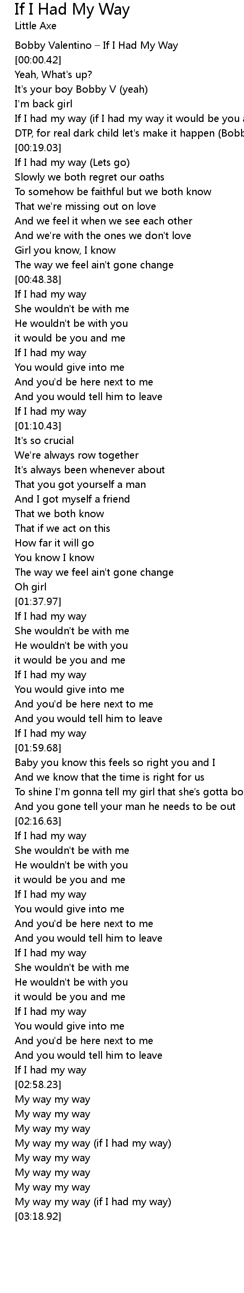 | [03:15.54] | My way my way (if I had my way) |