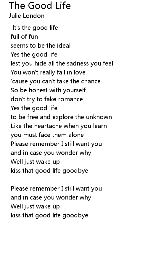It's the good life |