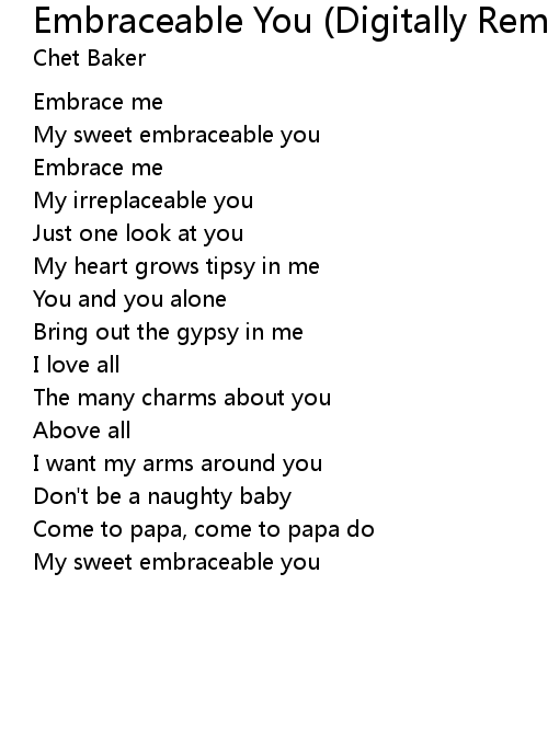 | [00:04.444] | My sweet embraceable you |