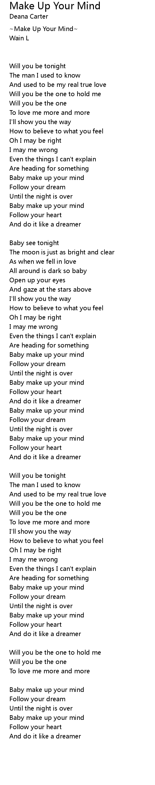 Baby make up your mind |